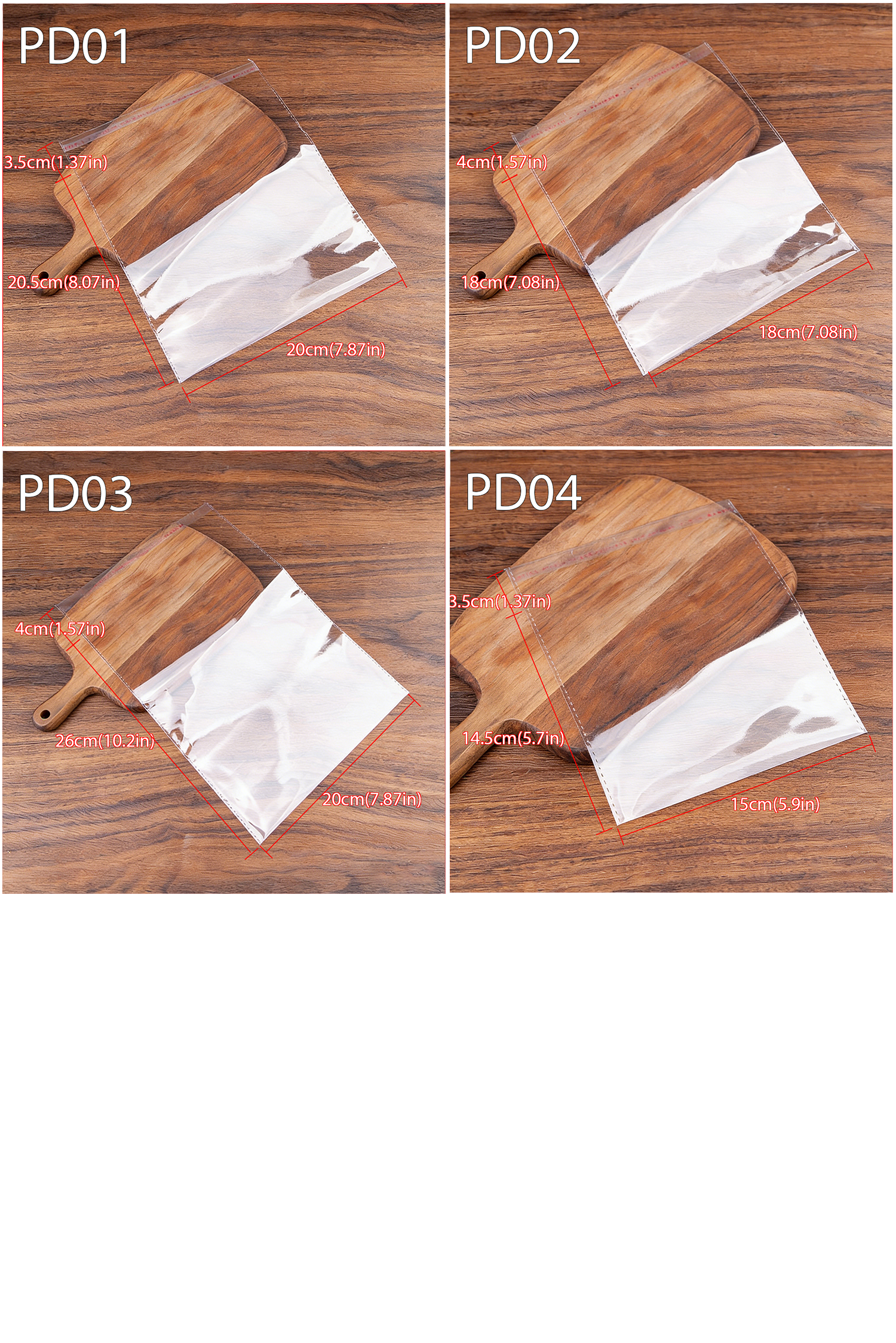 We offer a wide range of clear OPP bags for packaging. Standard sizes are available, custom sizes are supported, and you can choose either self-adhesive seal bags or twist-tie closure bags.